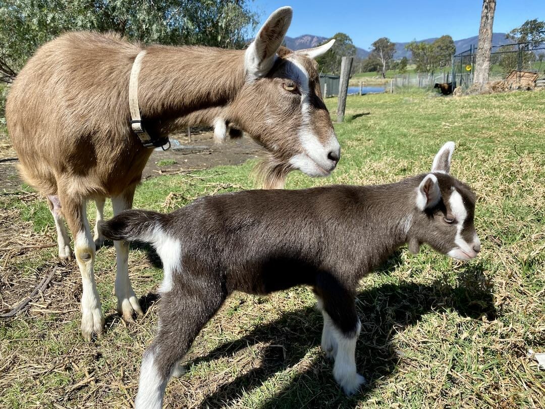On that point, all our goats are raised by their dams (mother) and heavily socialised in the herd so they know the rules and are relaxed around goats, people, dogs and other farm animals.